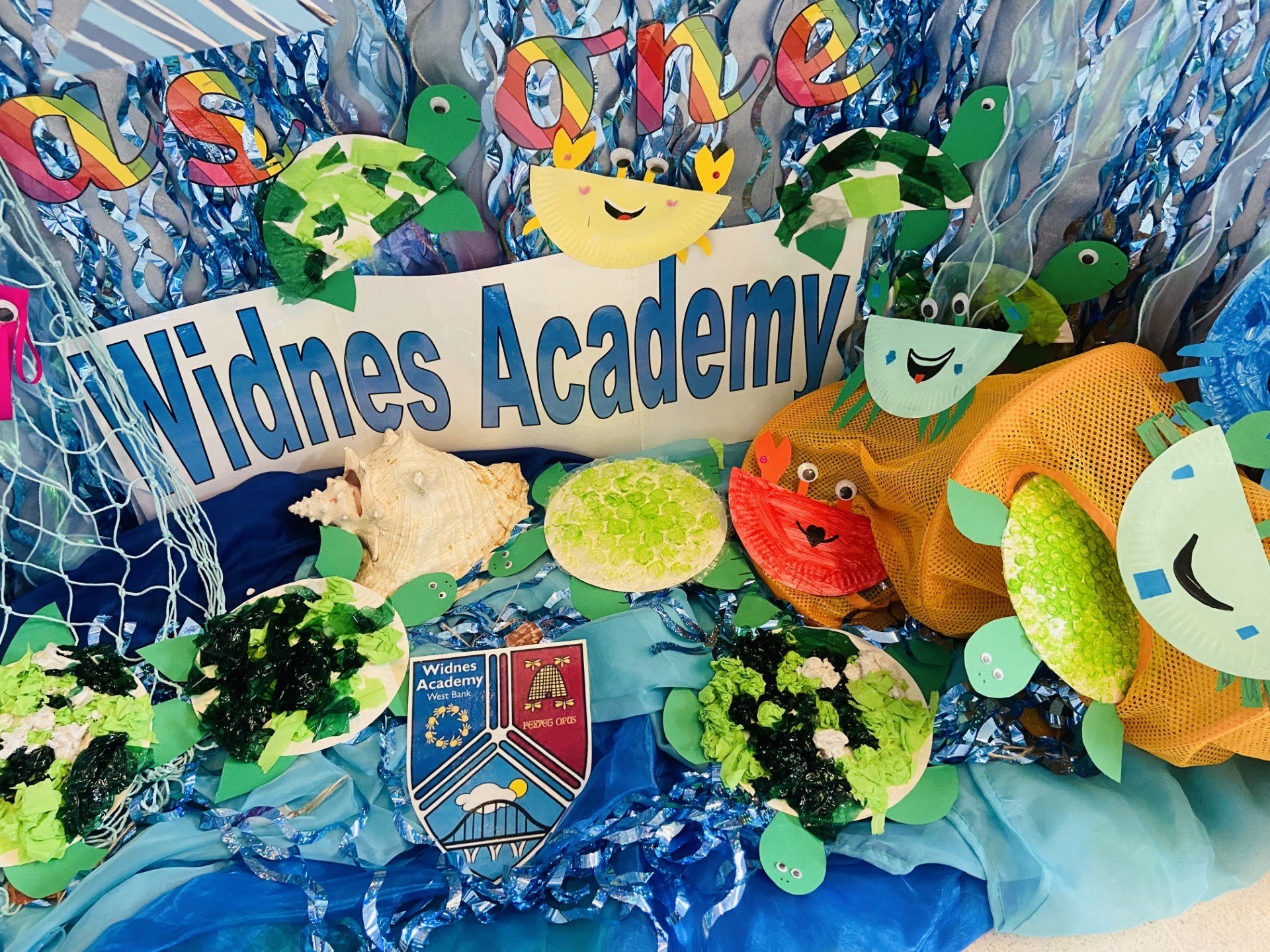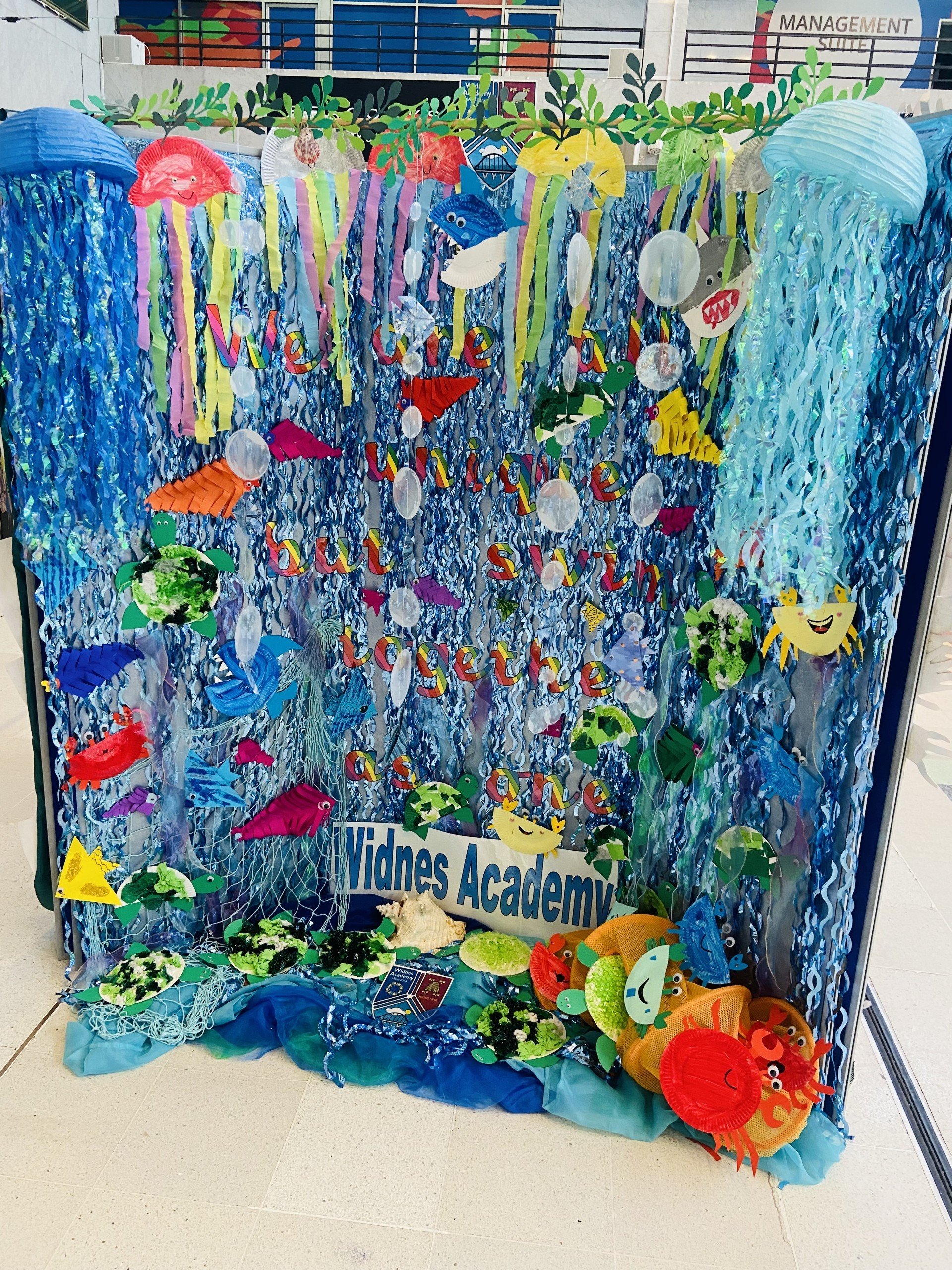 The children from Nursery to Year 6 created art work for a whole school display to be exhibited in Runcorn shopping city. The theme was, 'We are all different and that is what’s beautiful…’ The children worked together to produce an under the sea themed display.